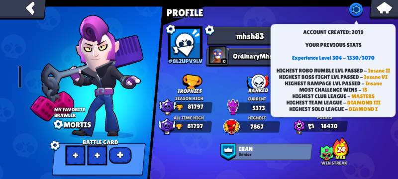 این اکانت خیلی قدیمیه و از اوایلی که براولاستارز انتشار جهانی رو داد این اکانتو دارم بازی میکنم
