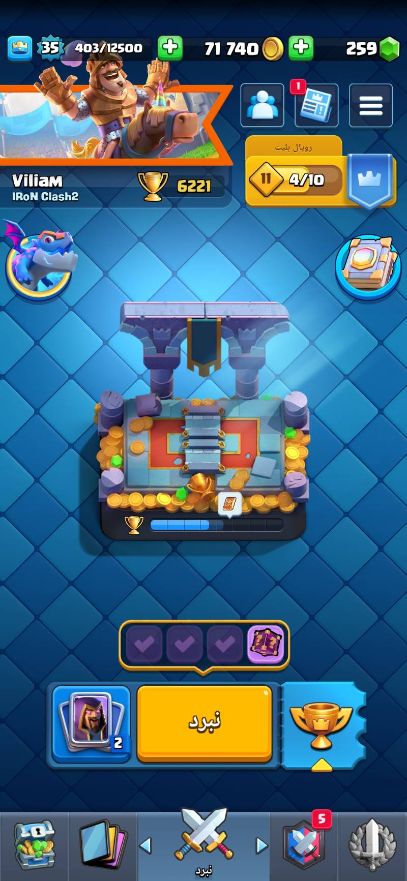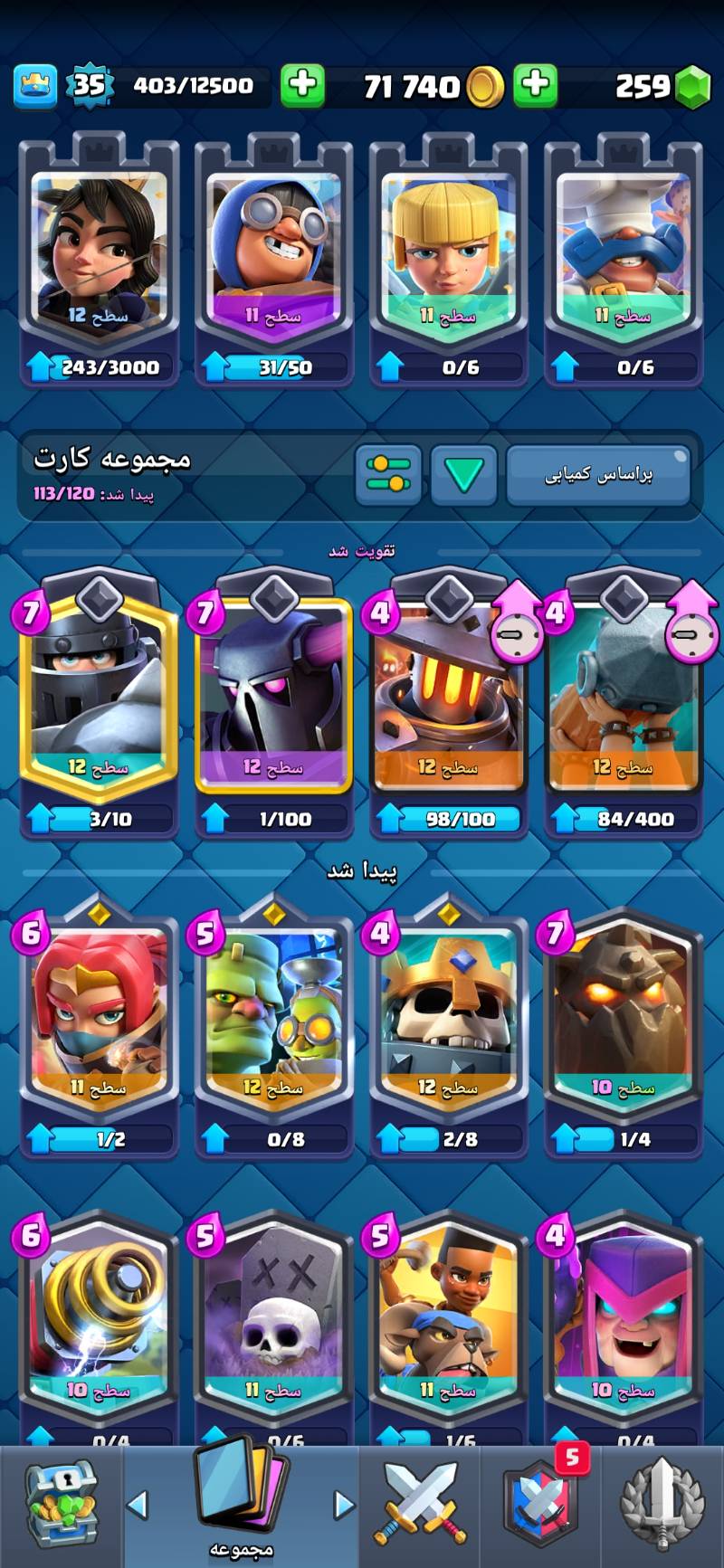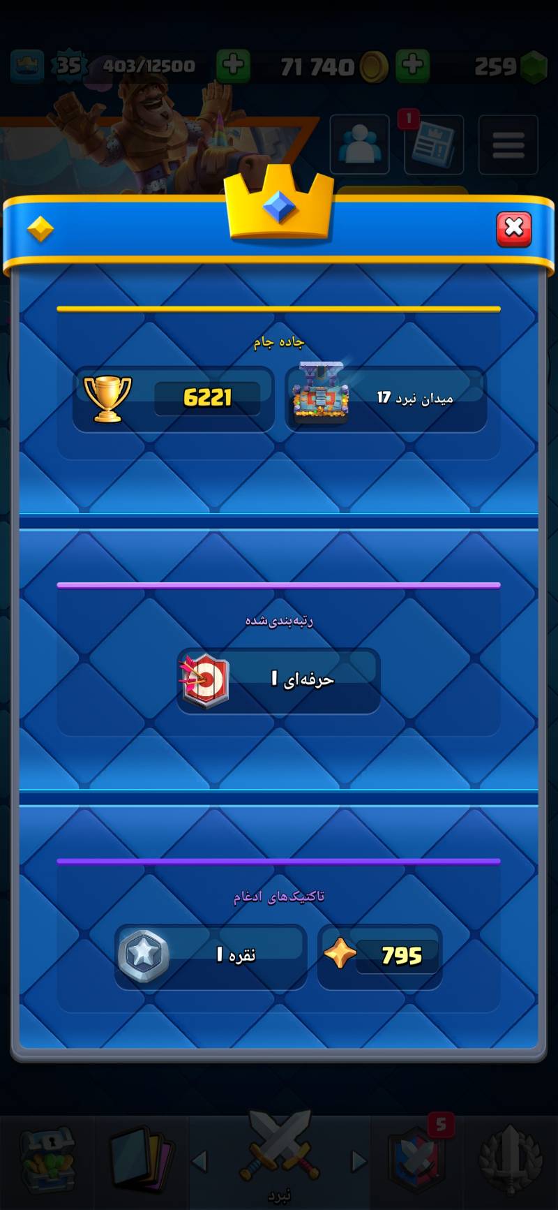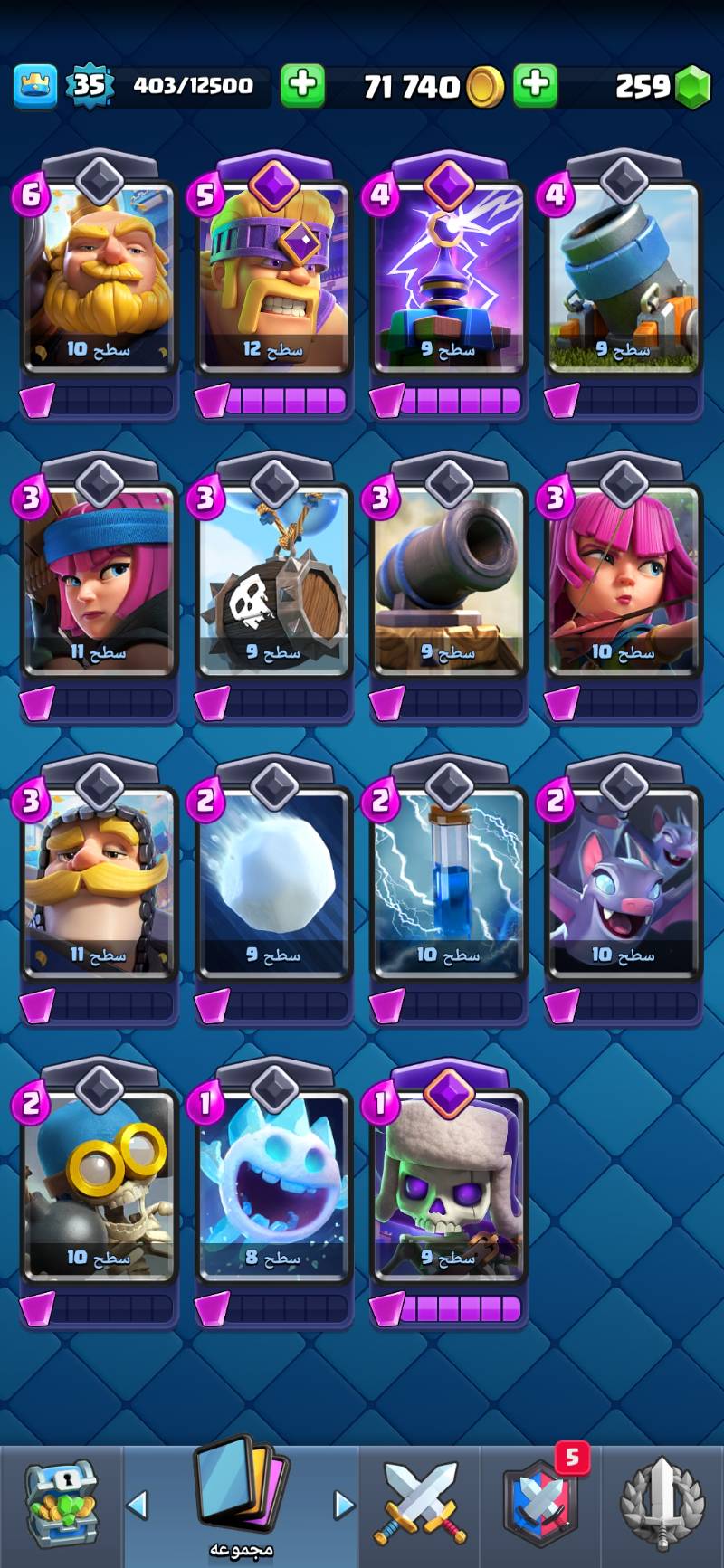 تعداد جم 259 تعداد سکه 71740 تغیر اسم رایگان 14 استیکر دارای 2500 ابرکارت نخبه و 5 معجون تقویت کارت و 6 کارت دارای تکامل و تعداد کاپ 6221 است