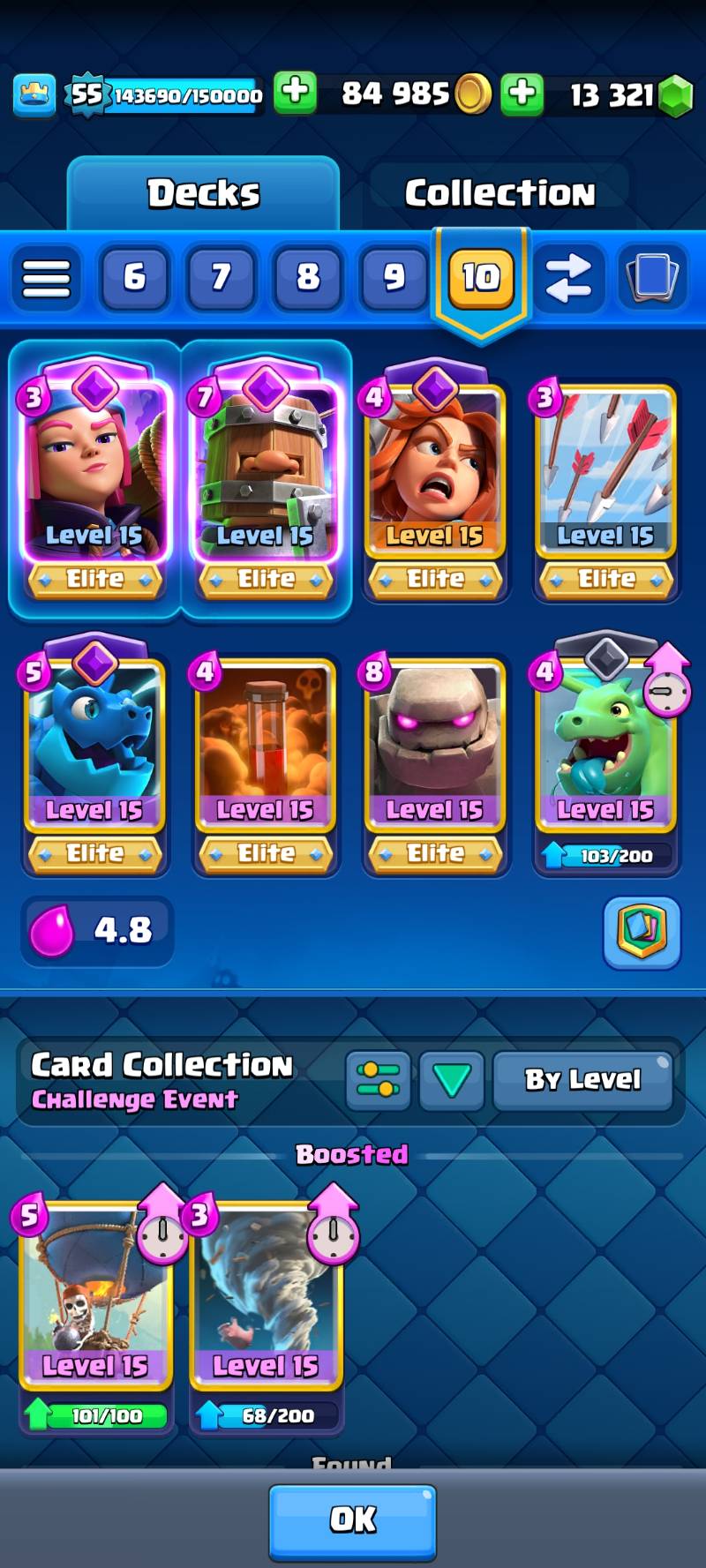 53 تا کارت لول 14 بجز الایت ها داره با کتاب و کارت های که داره راحت میتونید بجز دکی که مکث داره و کارت های که لول 14 داره اگر لول 12 یا 13 داشت مکث کنید
