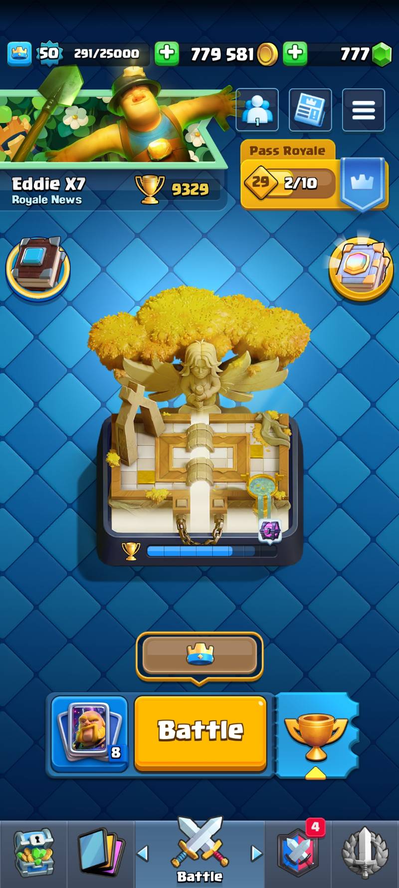 دوتا اکانت رویال و براول که هر کدوم ۲ میل میارزه براول ۲ تا پس پلاس و یه پس عادی پولی داره پایپر و کنجی پلاسن و پسای قدیمی هم توش هست الان یادم نمیاد اکانت تازه چنج شده جیمیل خام دستمه که کلا میدم